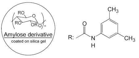 手性色谱柱(Chiral HPLC Columns)是由具有光学活性的单体,固定在硅胶制成手性固定相(Chiral Stationary Phases)。通过引入手性环境使对映异构体间呈现物理特征的差异,从而达到光学异构体拆分的目的。要实现手性识别,手性化合物分子与手性固定相之间至少存在三种相互作用。这种相互作用包括氢键、偶级-偶级作用、π-π作用、静电作用、疏水作用或空间作用。手性分离效果是多种相互作用共同作用的结果。这些相互作用通过影响包埋复合物的形成,特殊位点与分析物的键合等而改变手性分离结果。由于这种作用力较微弱,因此需要仔细调节、优化流动相和温度以达到最佳分离效果。