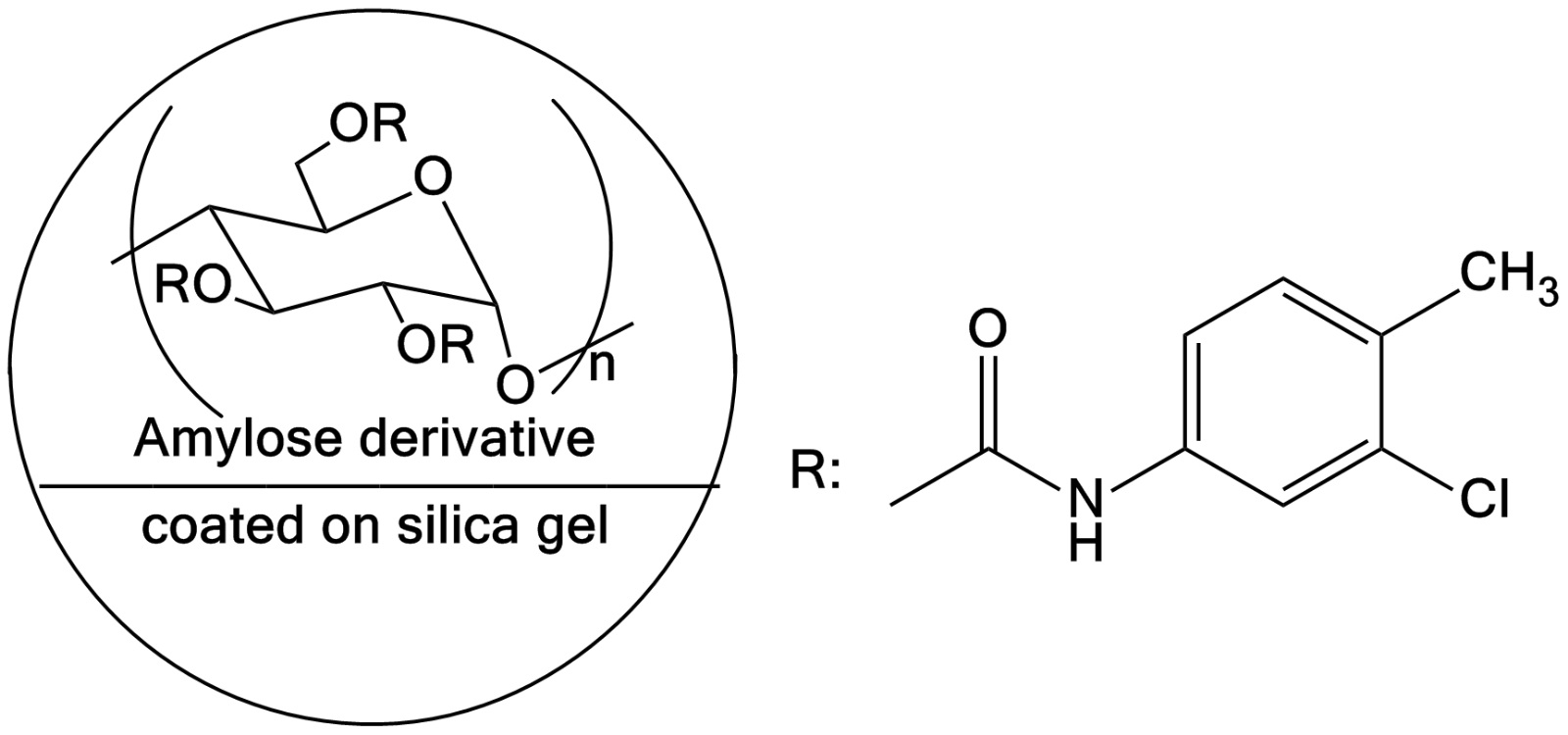 手性色谱柱(Chiral HPLC Columns)是由具有光学活性的单体,固定在硅胶制成手性固定相(Chiral Stationary Phases)。通过引入手性环境使对映异构体间呈现物理特征的差异,从而达到光学异构体拆分的目的。要实现手性识别,手性化合物分子与手性固定相之间至少存在三种相互作用。这种相互作用包括氢键、偶级-偶级作用、π-π作用、静电作用、疏水作用或空间作用。手性分离效果是多种相互作用共同作用的结果。这些相互作用通过影响包埋复合物的形成,特殊位点与分析物的键合等而改变手性分离结果。由于这种作用力较微弱,因此需要仔细调节、优化流动相和温度以达到最佳分离效果。